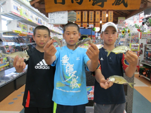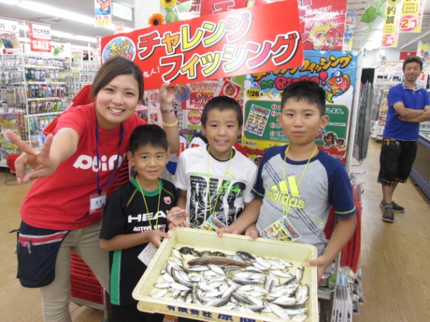 赤坂海岸でのサビキ釣りで豆アジやクロ、カマスを釣りましたよ~ なんと、新潟から遊びに来てくれていたそうです! チャレンジフィッシングも缶バッチとステッカーをGET! 夏休みの思い出になったかな? 【CF137北九州】 |