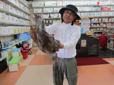 BIGなアオリイカでご本人様もスタッフもびっくりです ヤエンでの釣果は一撃ですね |