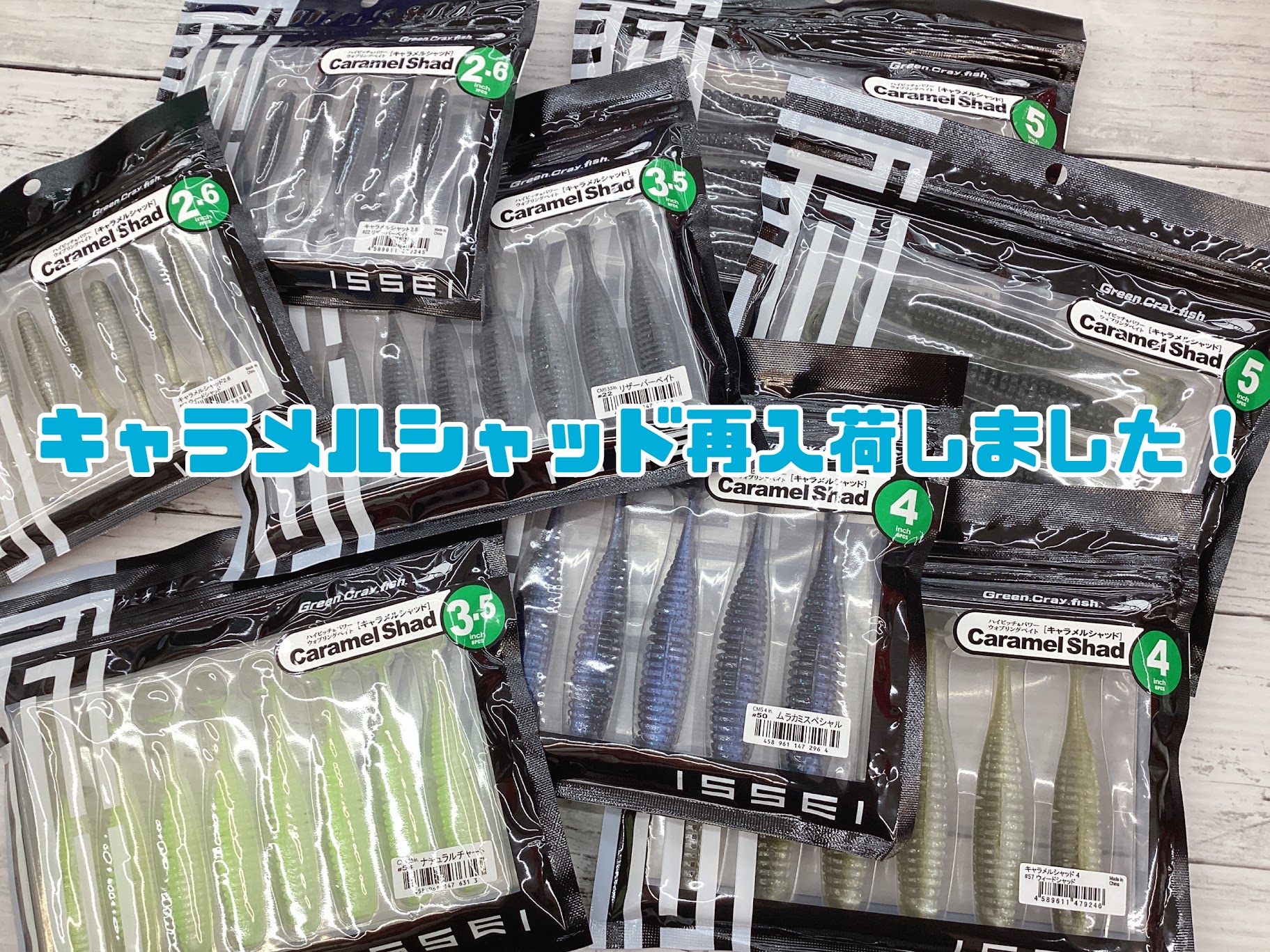 投稿日: 10月 8, 202510月 10, 2025 投稿者: 高松国分寺店【再入荷】キャラメルシャッド全サイズ入荷! みなさんこんにちは! 一誠より大人気商品が再入荷しました♪ 🐠キャラメルシャッド🐠 サイズ/2.6インチ・3.5インチ・4インチ・5インチ 各色、全サイズの入荷です♪ 是非、ご利用下さいませ☆