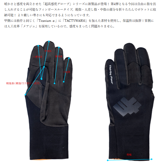 太陽光を吸収して蓄熱保存するハイテク素材『タクティウォ-ム』を採用で、手首まであたたく、寒い時期の釣りには欠かせない製品です。