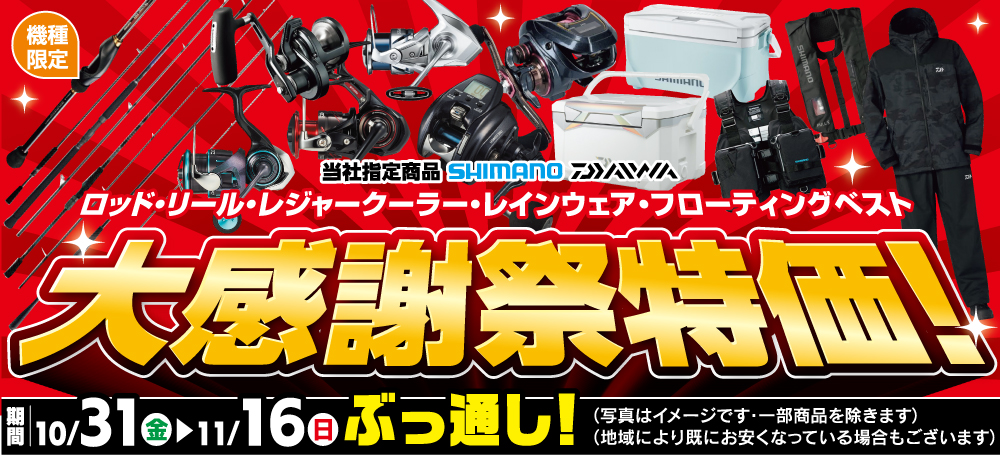 ※当社取扱いメーカのルアー・エギ・タイラバ・テンヤ・スッテに限ります。