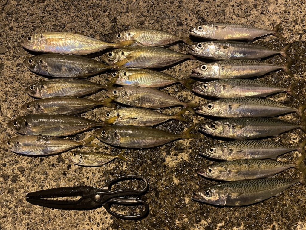アジ13匹、サバ9匹でした💫