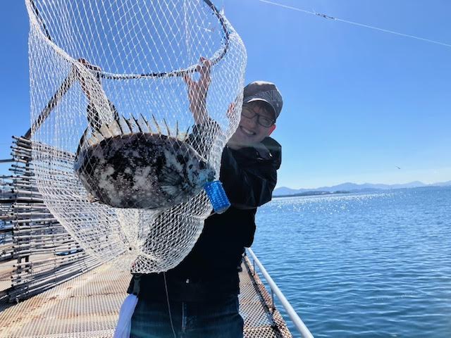 気候も良くのんびりと小さなカワハギと遊んでいると急にものすごい引きが!!!