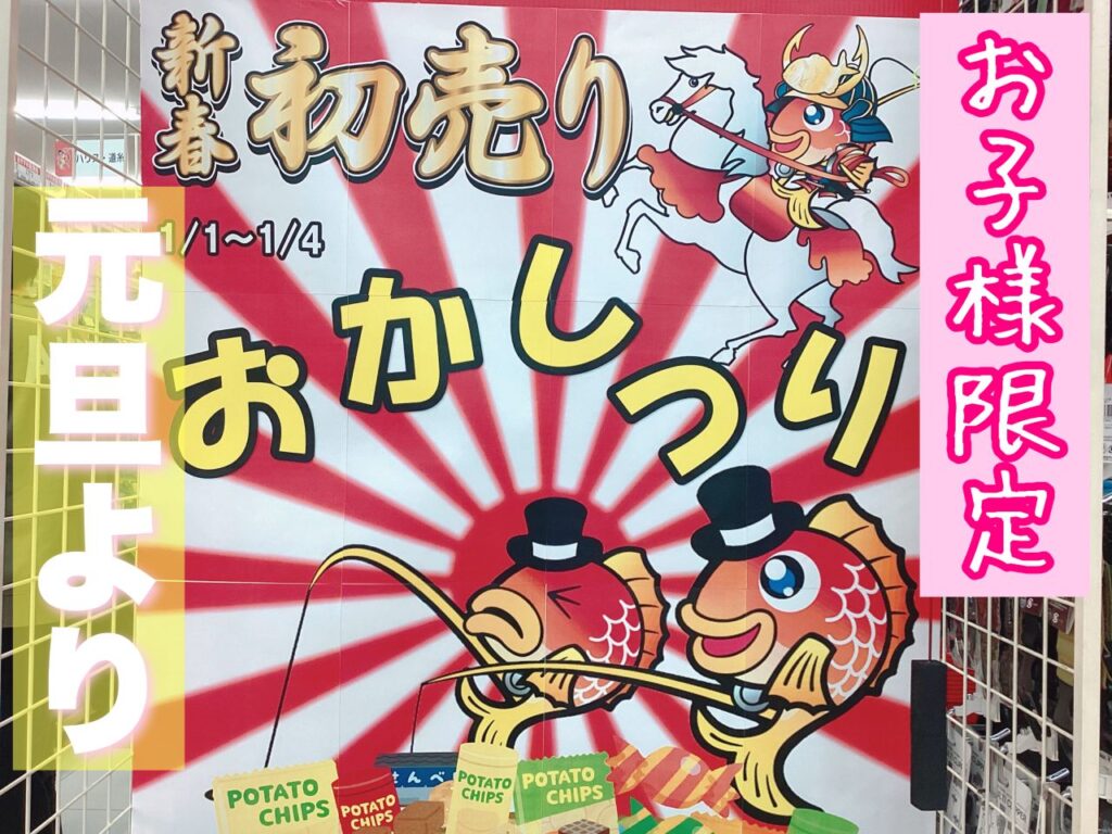 投稿日: 12月 28, 202512月 28, 2025 投稿者: 香椎店【おすすめ】新春初売りではこんな企画も! こんにちは香椎店です😁 本日は、『新春初売り』の見どころの ご案内をいたします😊 2026年元旦あさ9時から始まります、 『新春初売り』では、お子様限定企画! お菓子つりが開催されます😍 お買い上げいただいたご家族のお子様限定で チャレンジできます😆 お正月は、ポイント香椎店へ! お待ちいたしております😊