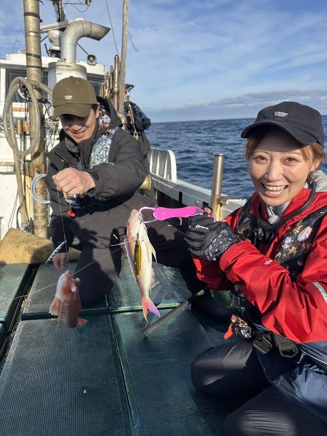 アソビタガール2号 兼頭のぞみさん、山口小郡店の近藤店長、撮影クルーの皆様でライトジギングに挑戦です👍