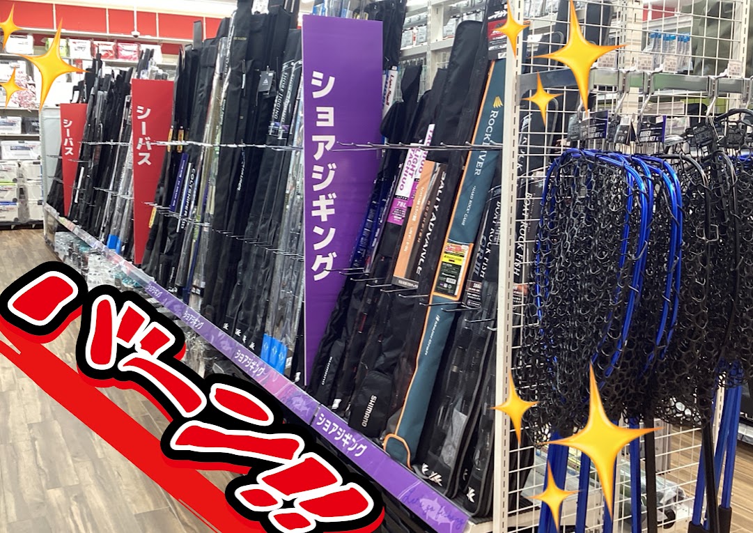 隣の通路には、『シーバスロッド』や『ショアジギングロッド』
