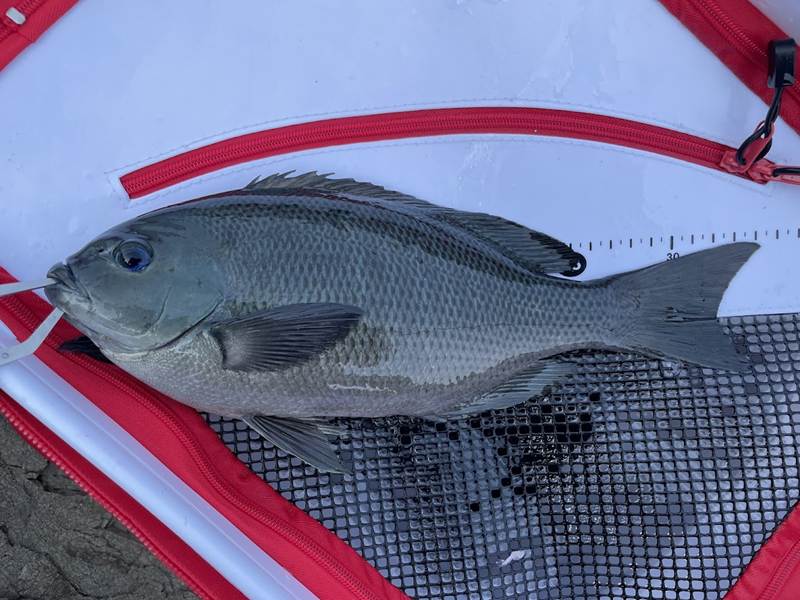 回収30分前にやっと本命の潮が流れると、やっとキープサイズが釣れました