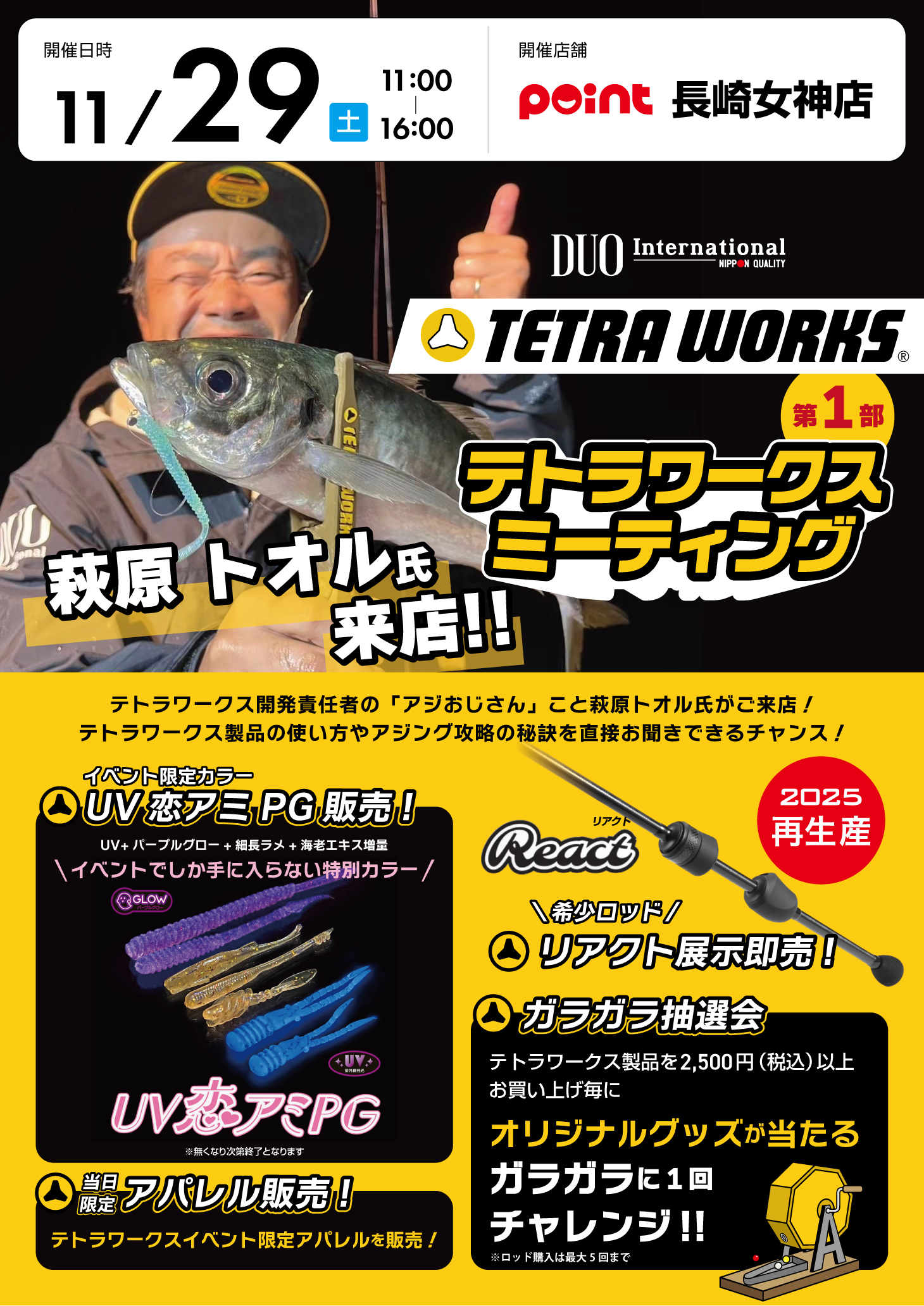 第二部は長崎女神店の釣り桟橋(第二駐車場)で萩原トオル氏と一緒にアジングができる!