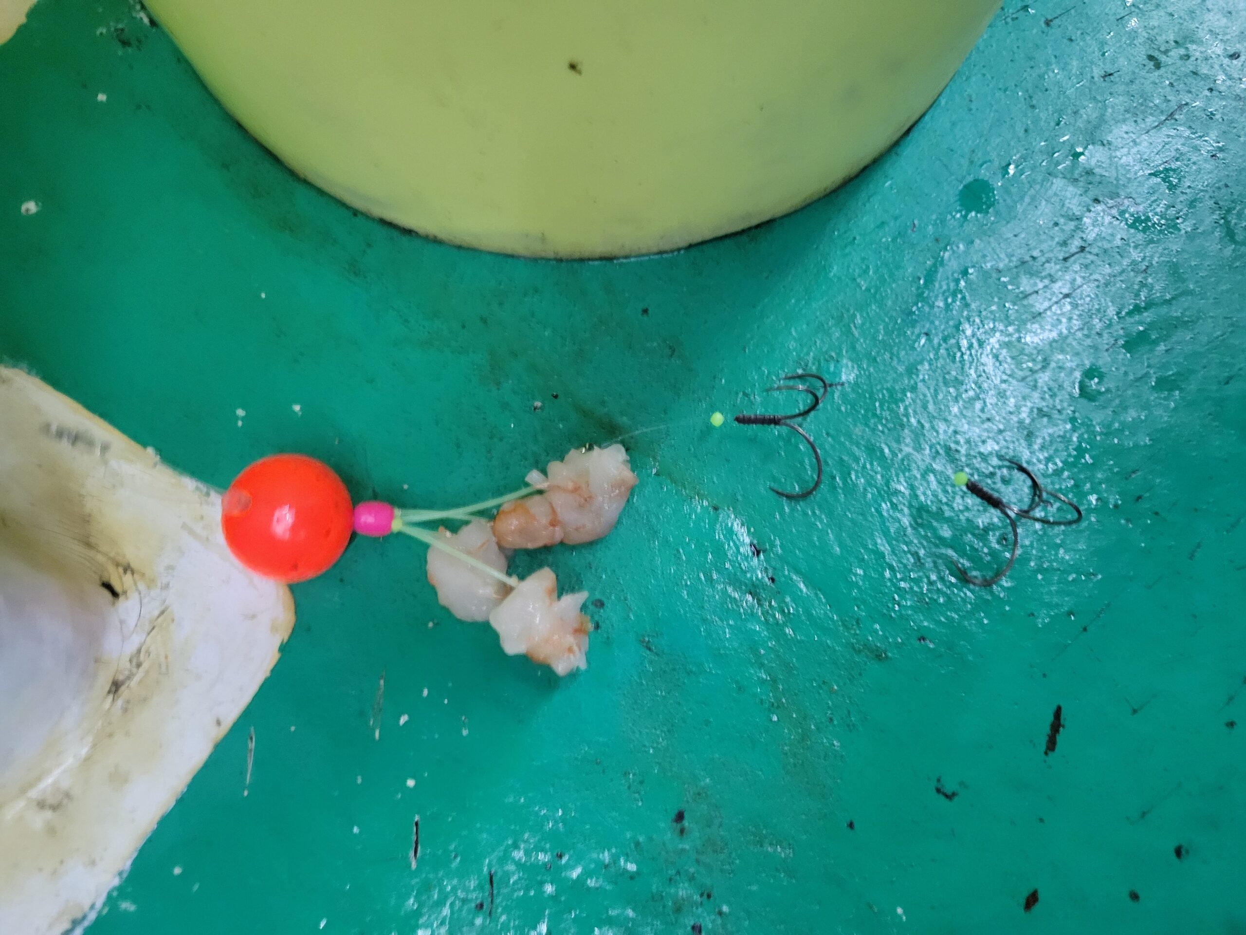 エサは、当店で販売している、アルゼンチン赤エビを殻剥きにて