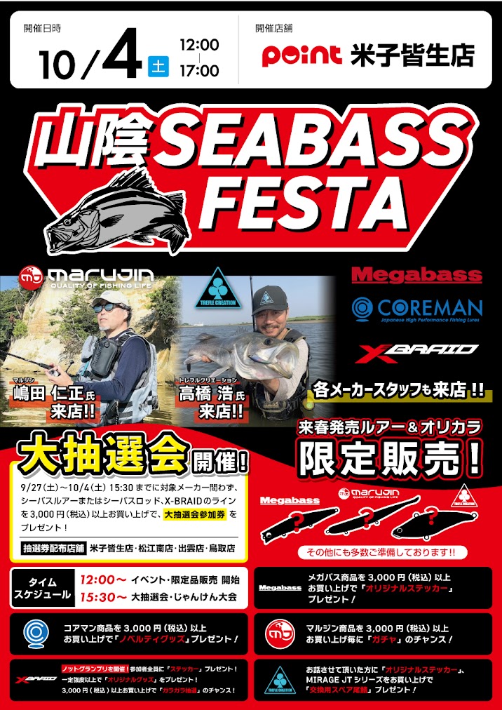 また、10/4は米子皆生店で