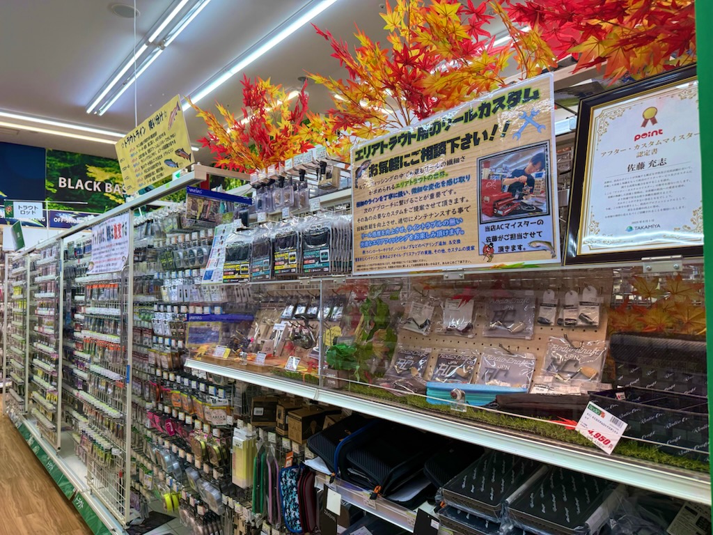 当店は地域一番、圧倒的品揃えを目指しエリアトラウトコーナーを展開しています!