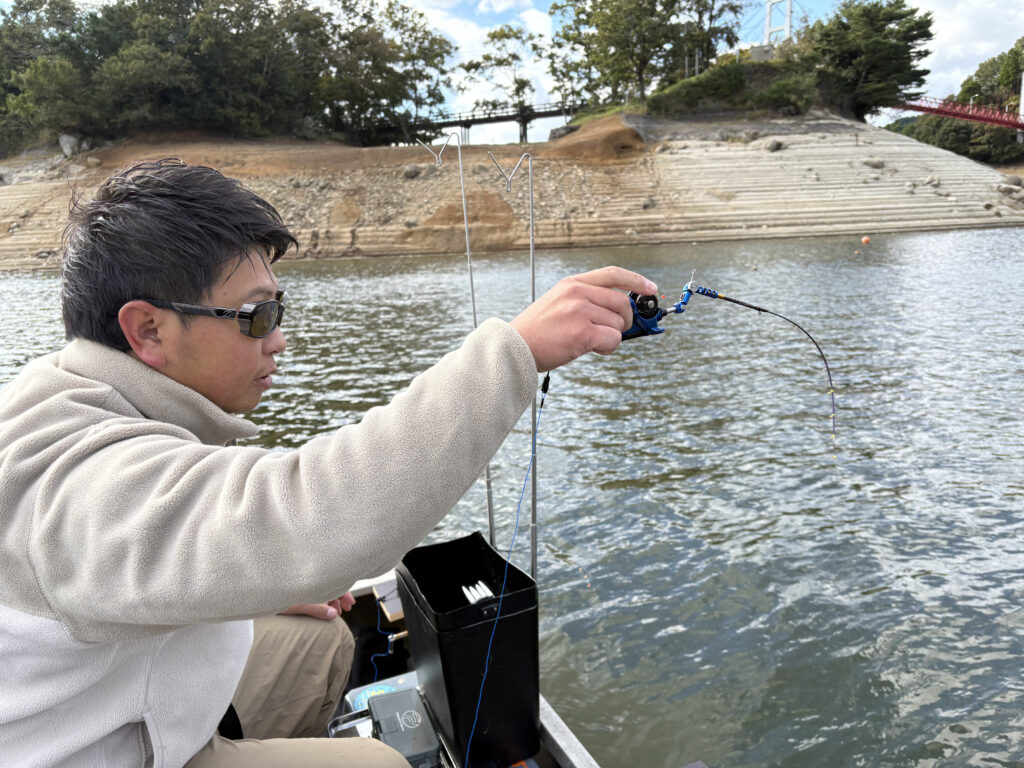 とてつもないトルクの引きの魚を掛けて