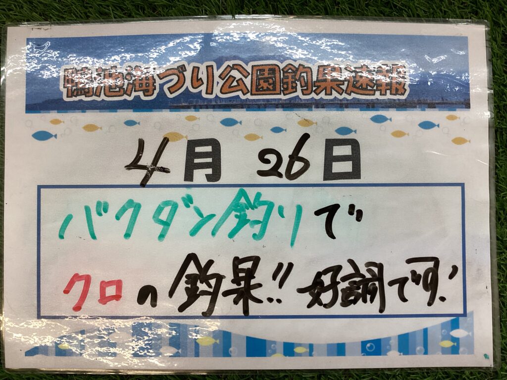 それでは本日の鴨池海づり公園の釣果情報です!!