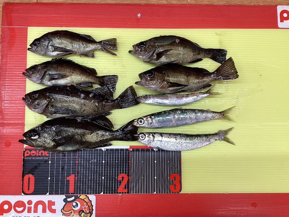 鹿島で飛ばしサビキでの釣果🐟 湾外のほうがメバルのサイズがいいそうです👀 イワシは少し遠投が必要だったとのこと💁