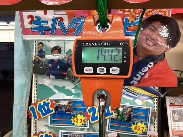 14.42キロのBIGなマグロをお持ち込みいただきました! 2025年、総釣り上げ本数は いったい何本になるのでしょうか・・・ 伺うのが楽しみです☆ |