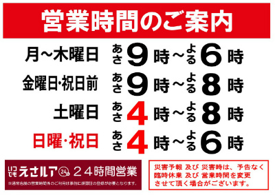 日曜・祝日の夜も、夜20時 までと変更になります!!