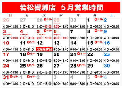 ☆ゴールデンウィーク期間の営業時間変更のご案内です☆