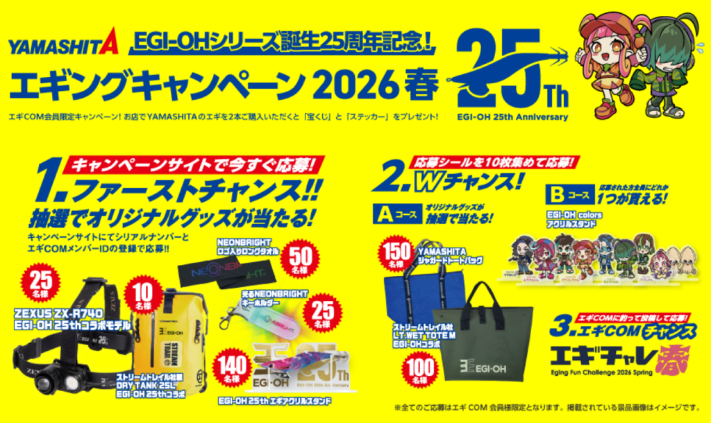それを記念して、YAMASHITAから超豪華な エギングキャンペーン2026春 がスタートしました🦑🔥