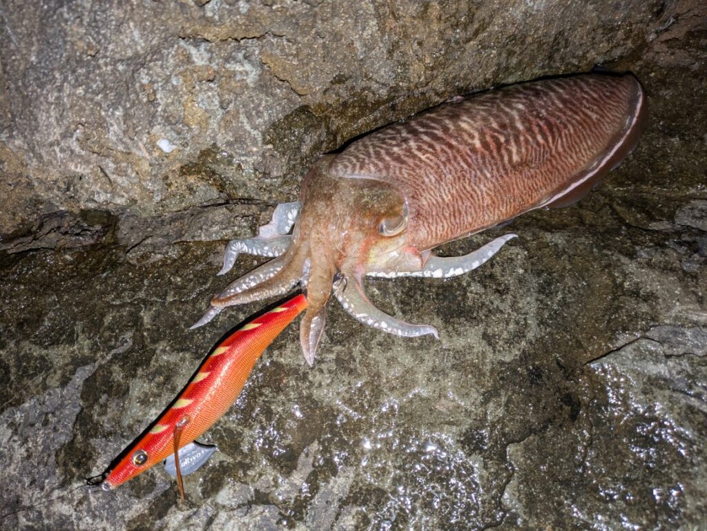 コウイカ2枚と大型のアオリイカを掛けましたが