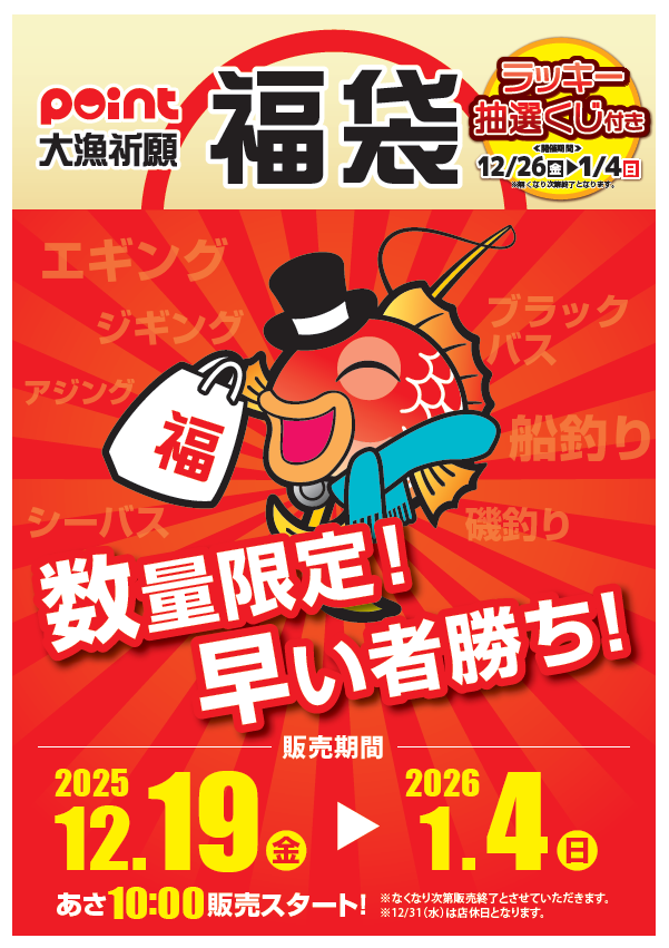 福袋発売開始日の12月19日にご来店くださいませ‼️