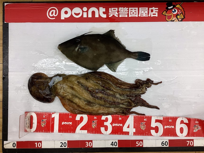 | 【サイズ】 | ウマヅラハギ 37cm マダコ 1490g |