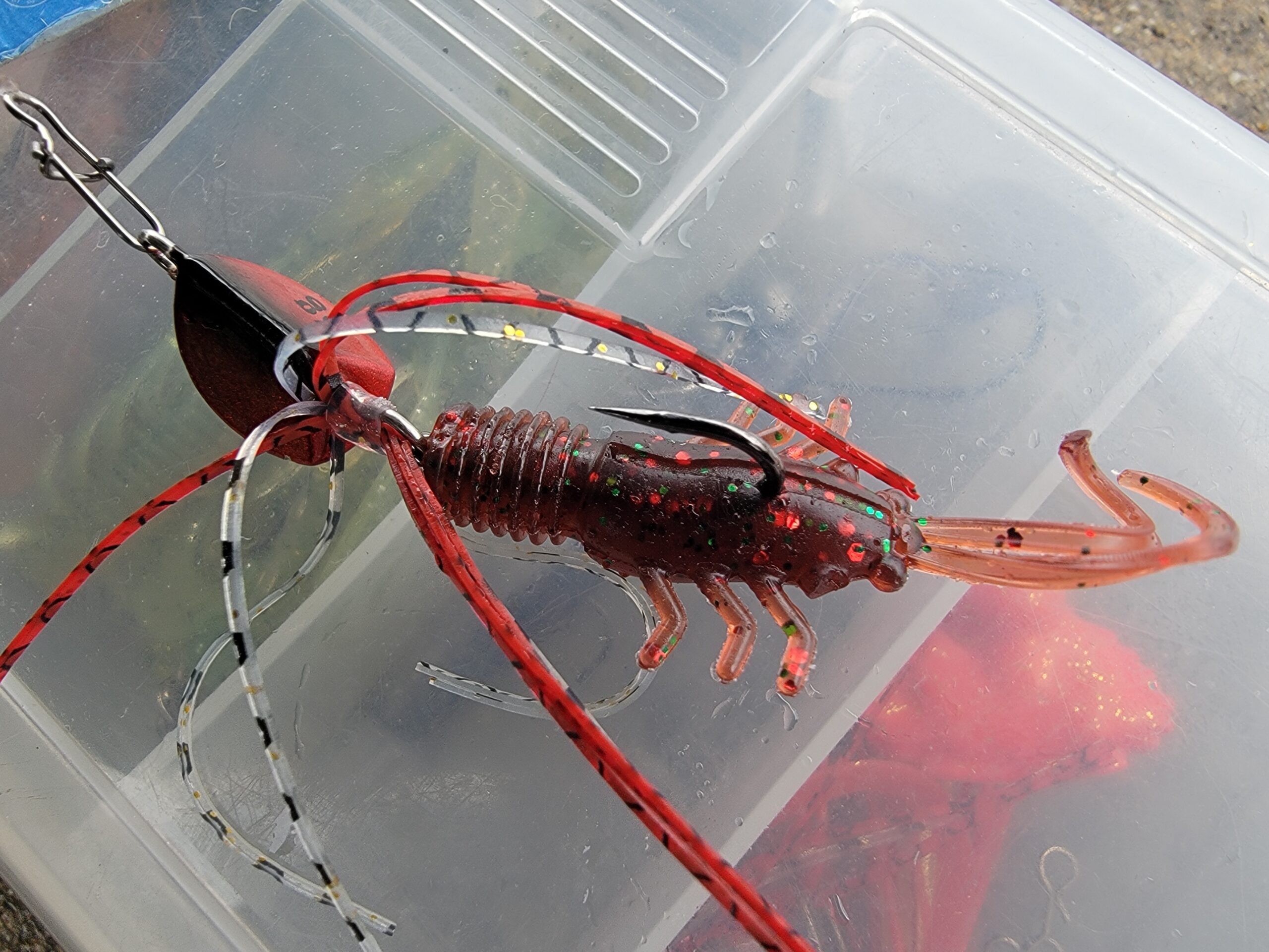 ここで他のワーム、リグも試してみようと、アーバンクローラーを付けたMKリグを試してみたのですが、当たりはめちゃくちゃあるものの、ショートバイトばかりでヒットさせられず…
