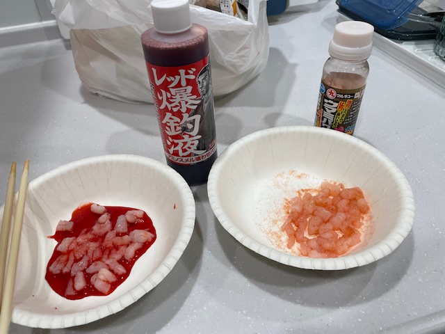 仕掛けはエサ巻きエギに塩締めささ身を巻いた