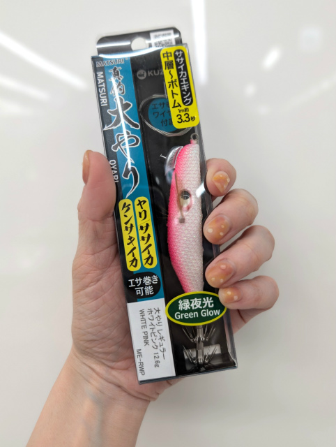 スーパー初心者の私は、野村店長に釣り方とシャクり方をレクチャーしてもらいました。