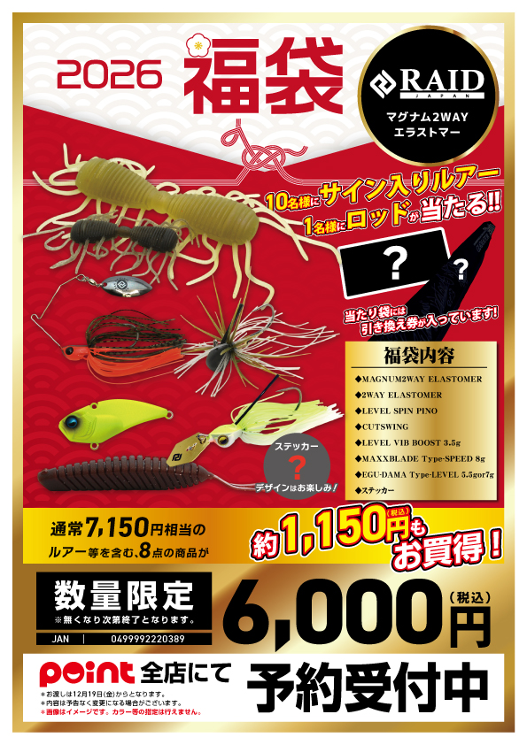 こちらも6000円の福袋でロッドが当たります、高確率です!!
