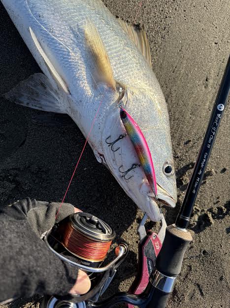 その後よさげなポイントで同級生がオオニベを釣り…