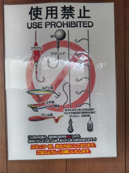 釣場の入口にはルールや注意事項