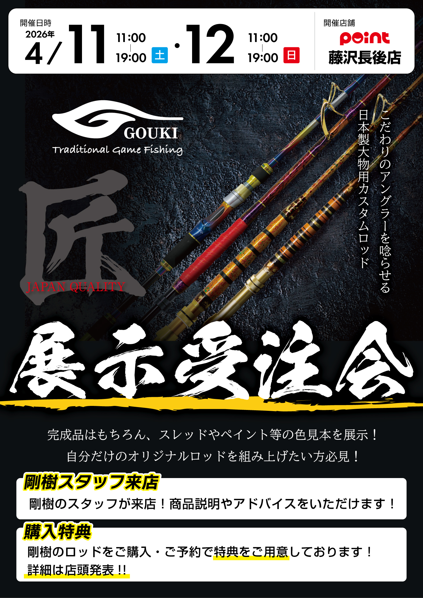日本製 剛樹ロッドを展示!