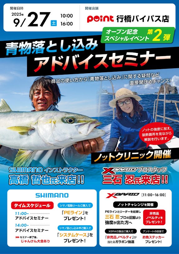 本日9/27(土) 10:00~16:00に青物落とし込みアドバイスセミナーを開催!
