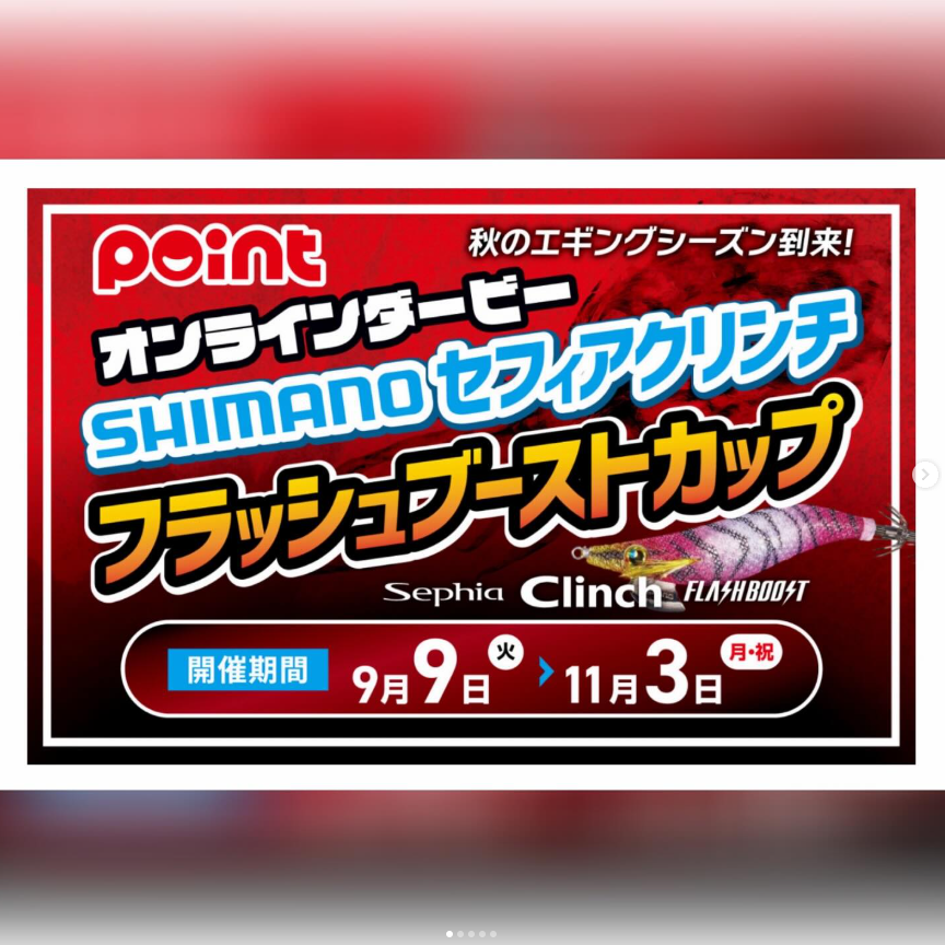 釣具のポイント店舗・釣具のポイント【公式】オンラインストア (釣具のポイントのその他通販サイトを除く)で当社指定のシマノセフィアクリンチフラッシュブーストお買い上げで オンラインダービーエントリーカード をゲット!