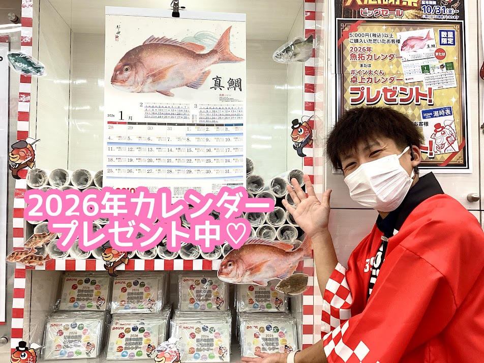《魚拓の壁掛けカレンダー》と《ポイン太くんの卓上カレンダー》の2種類をご用意しております✌🏻