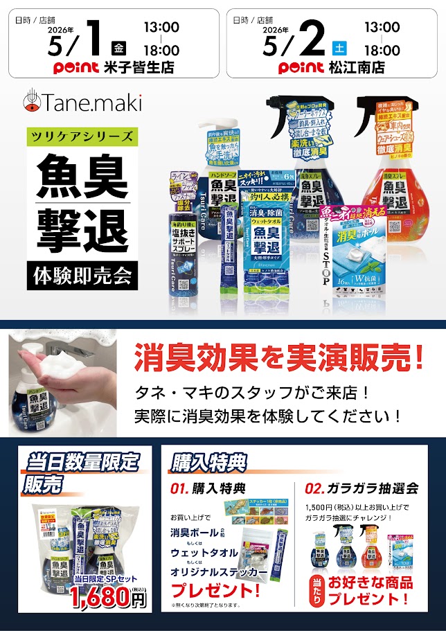 5月2日 タネマキさんの魚臭撃退イベント開催いたします!