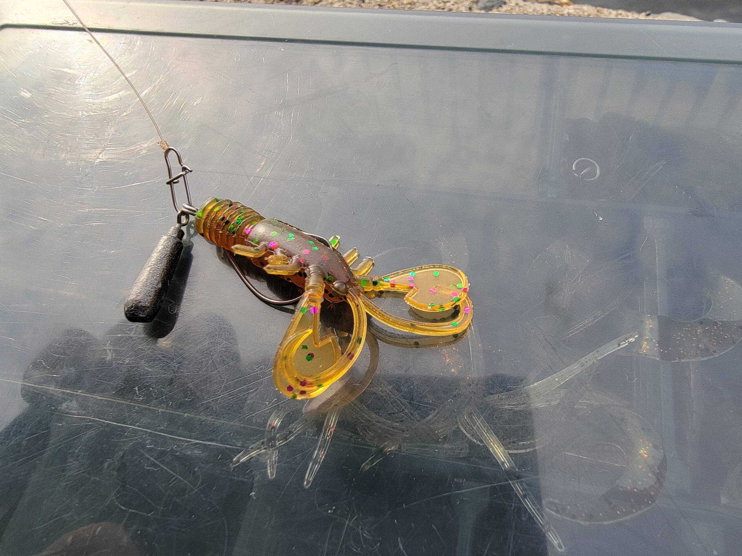 インバイトクローで探っても後ろから距離を取って追ってくるだけだったので、ちょっと大きめのアーバンシュリンプ 2.4インチの方がいいかな…と思って交換したら目の前まで追ってきて飛びかかってきました!