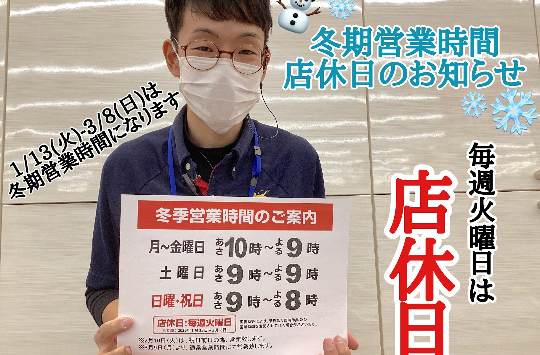 冬季営業時間のお知らせです。