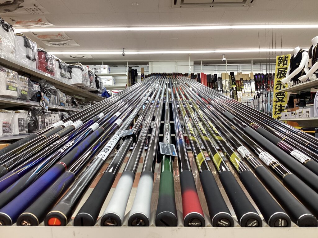 普段店舗に置いてない高級鮎竿、