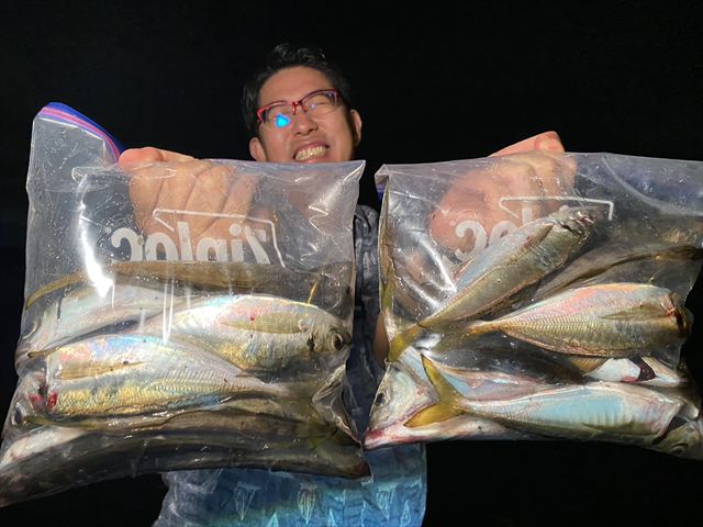 アジが釣れるとめがねが赤くなるんですね🙂(たしか前は赤いのをパリピメガネっす!とか言ってたような。詳しくは本人までどうぞ)