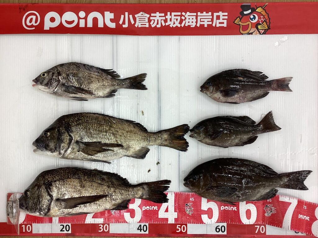 沖磯にて なんと!!82.5cm、6,215gの 真鯛を釣りあげられております!! 他にはチヌ、クロも!